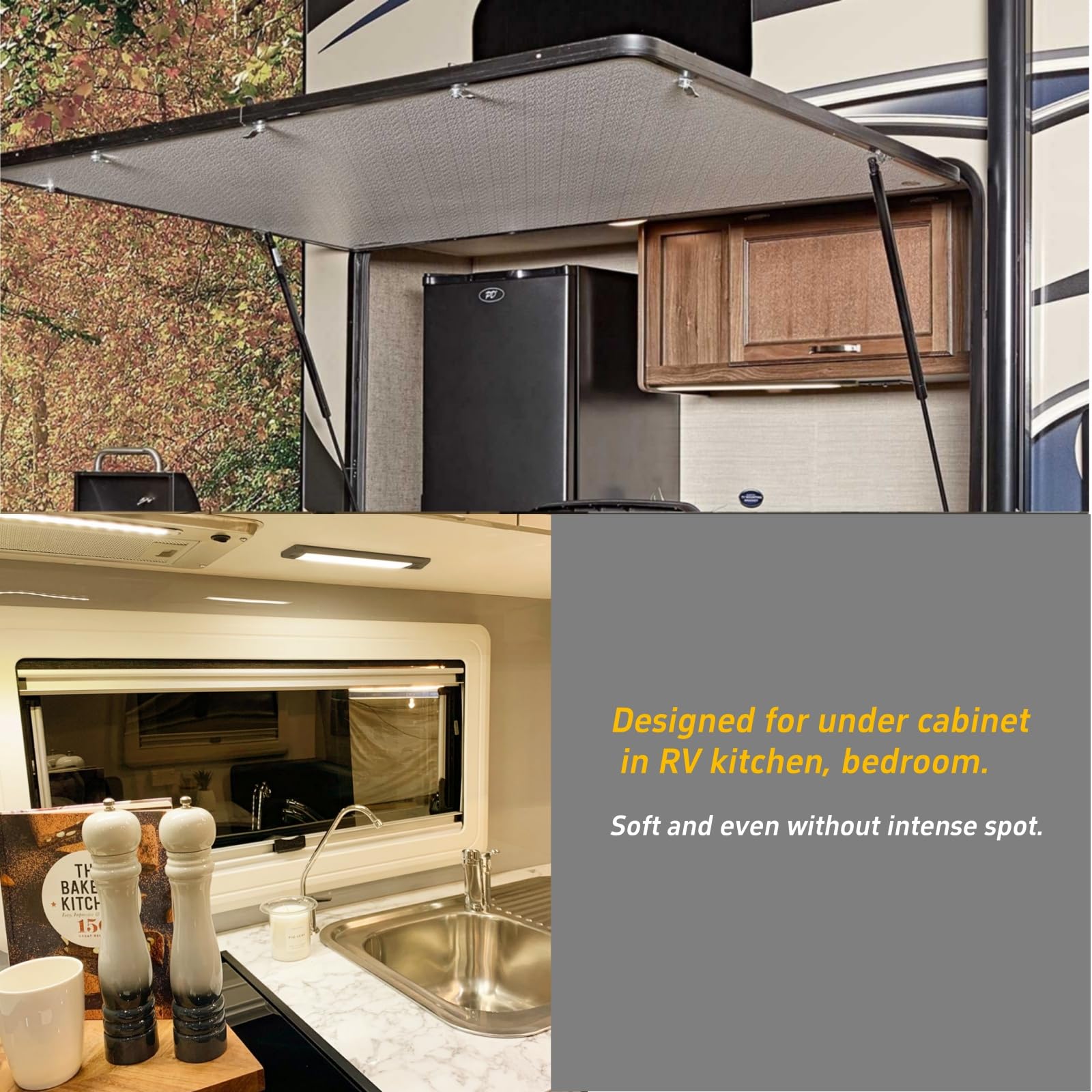 12V RV Light Interior LED Hand Swipe Sensor Light Fixture for RV Kitchen Cabinet Dimmable Warm White Lighting 490lumens, 12.6inch