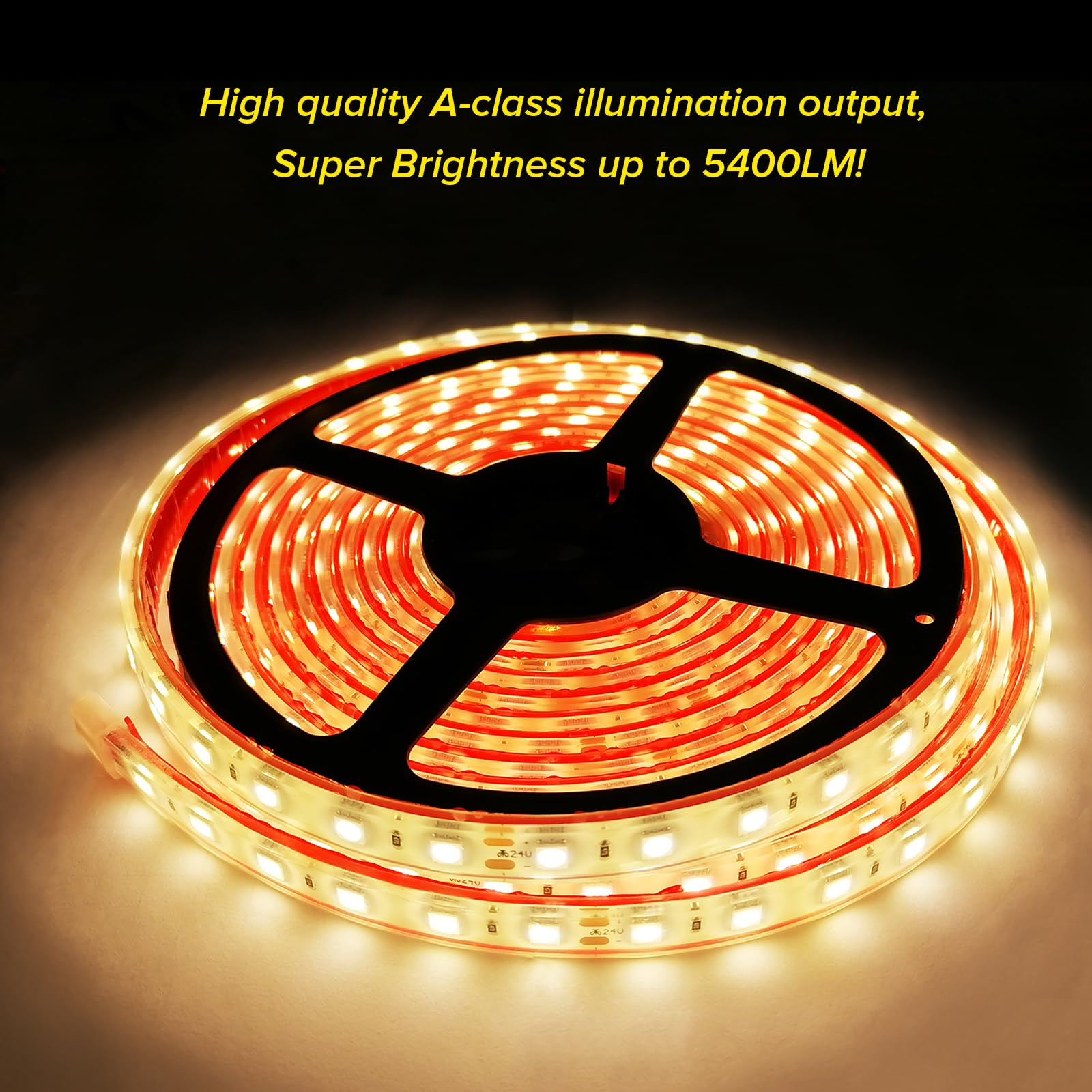 16.4ft/5M 24V LED Strip Light 3000K Warm White Lighting IP68 Waterproof Flexible LED Tape Lights for DIY Cabinet Bedroom Boat Decor