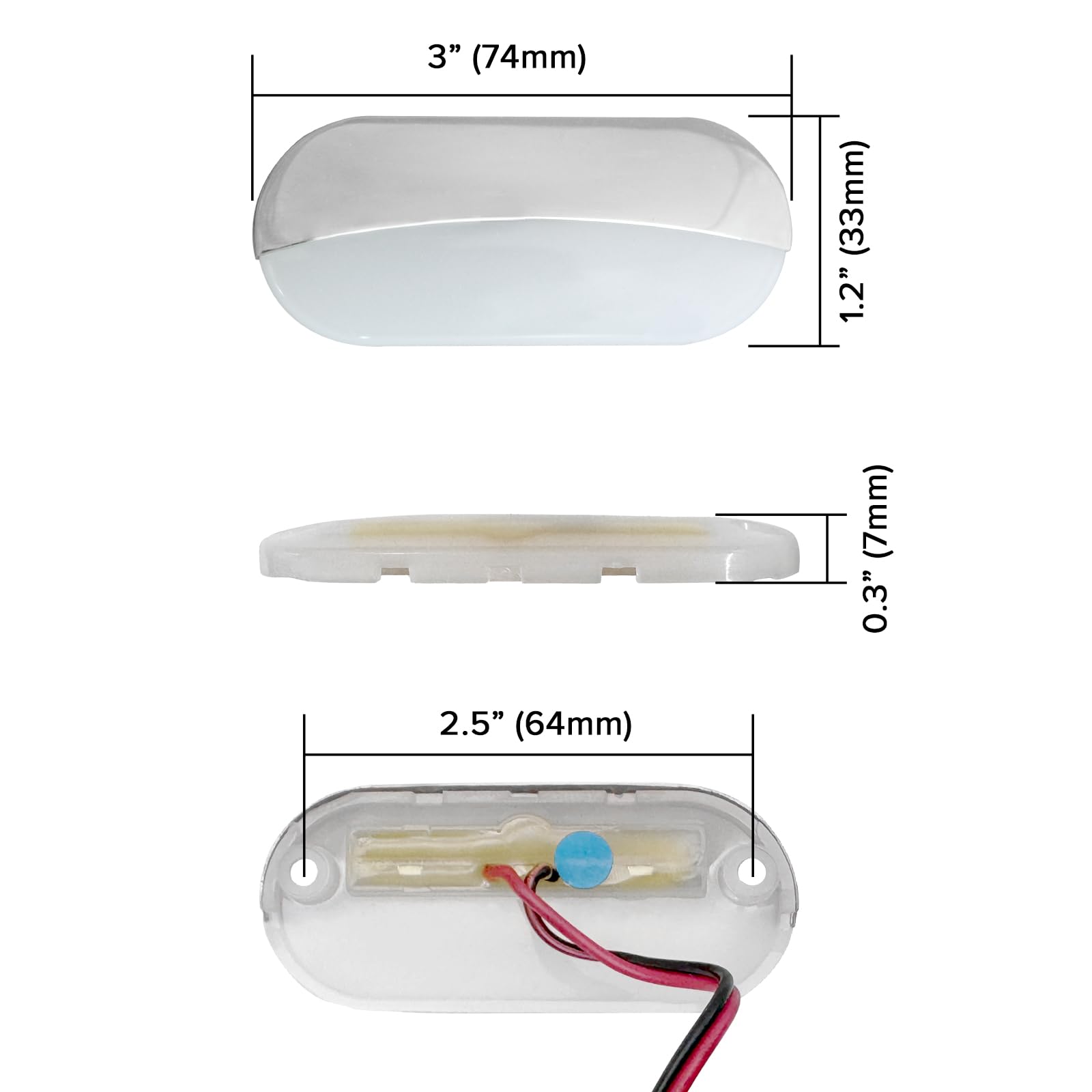 Boat Courtesy Lights 3 Inch Oval RV Step Lights with 316SS Bezel for RV Camper Marine Boat Footwell Cabin Deck Light 12V 0.1W 3000K Warm White Lighting IP65 Waterproof Outdoor Light, 6-Pack