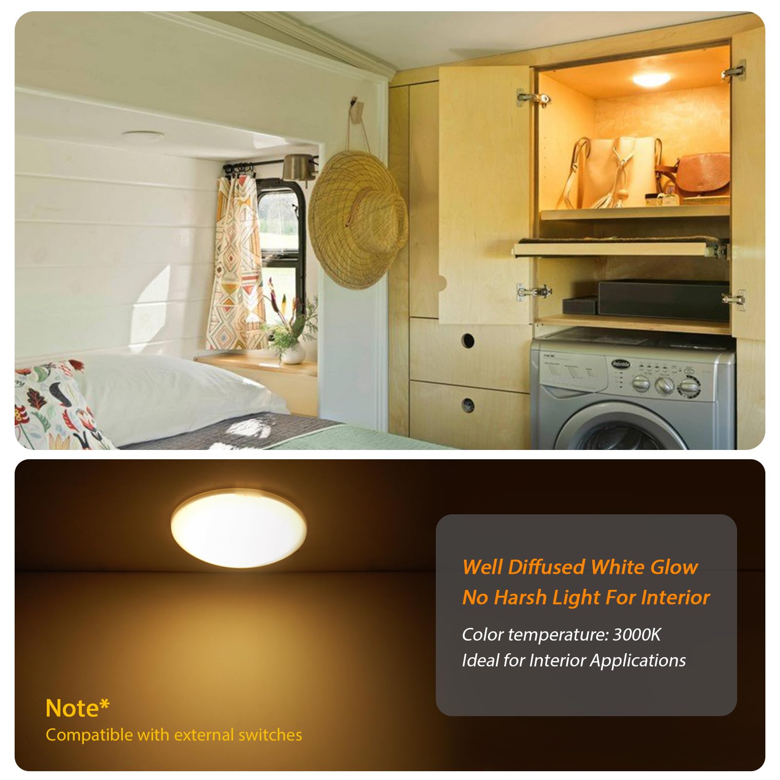 - 12 VOLT LIGHTS - This amazing LED Mushroom Dome Light is for 12volt low voltage interior caravan, motor-home, and RV interior roof light applications.