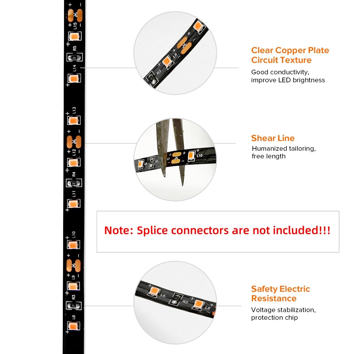 - Efficient 2835 LEDs provide high intensity beautiful amber light (dimmable) at low power consumption.