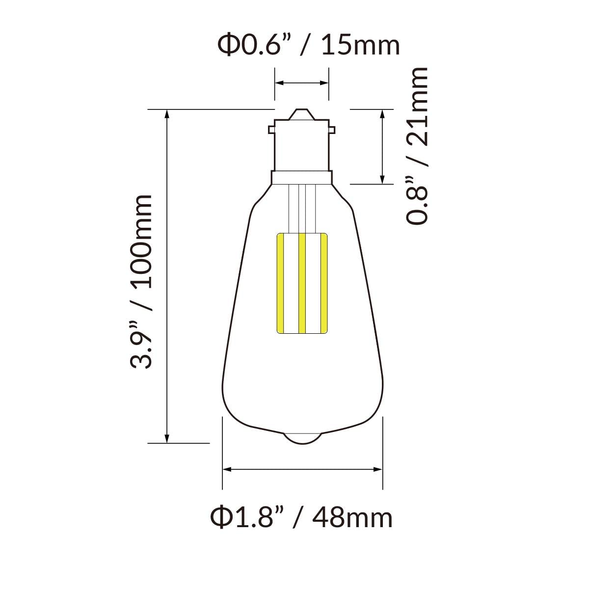 - Non-Standard Size with 1-Year Warranty - Measures 3.9" L x 1.8" W x 1.8" H. This RV 12volt LED bulb is IP44 rated for damp environments. Due to its specialized design, confirm compatibility with your Dream Lighting LED Edison fixture before purchase.