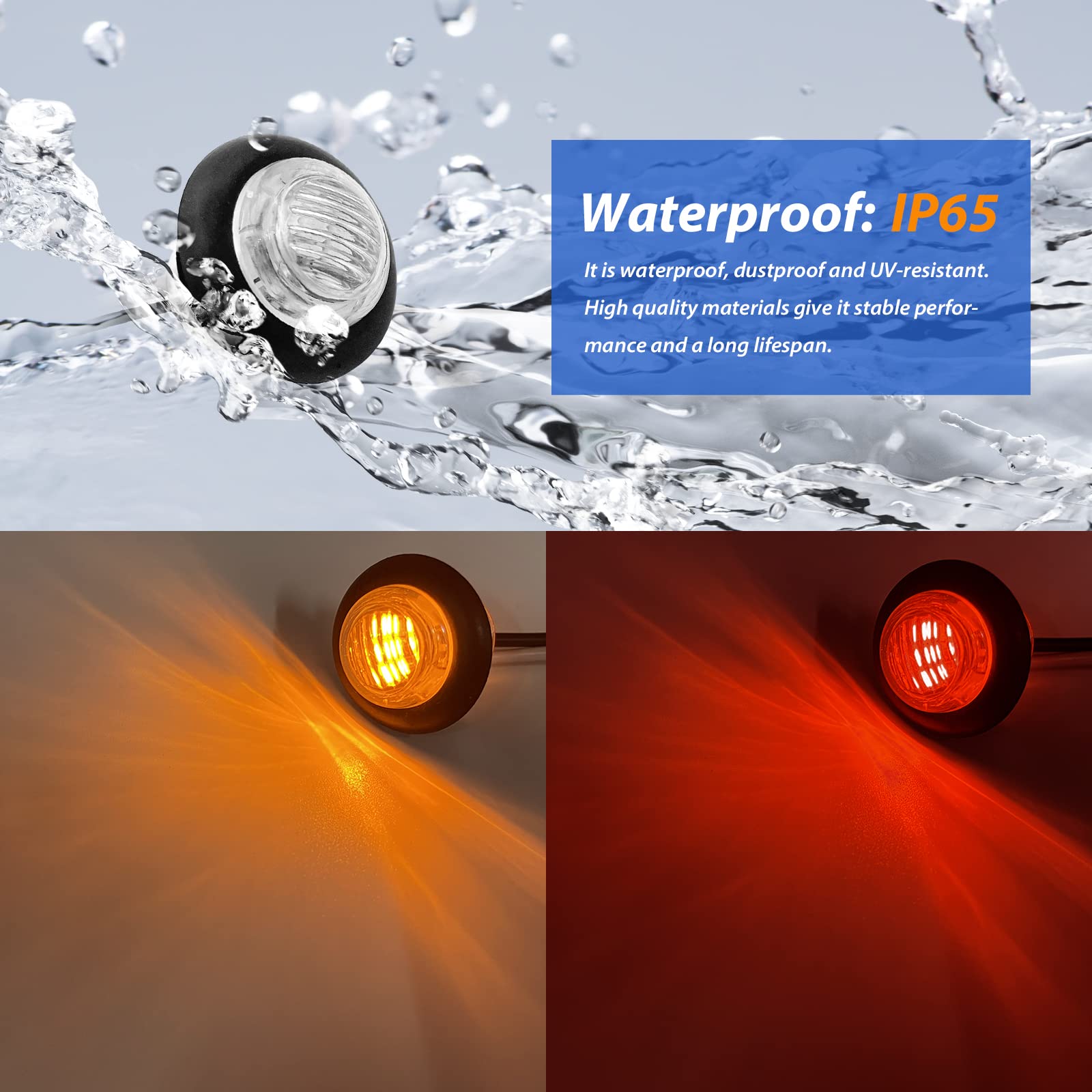 Dream lighting LED Trailer Side Marker Lights Utility Trailer Light Kit Clearance Bullet Marker Lights for RV Camper 3/4 Inch 10 Amber + 10 Red