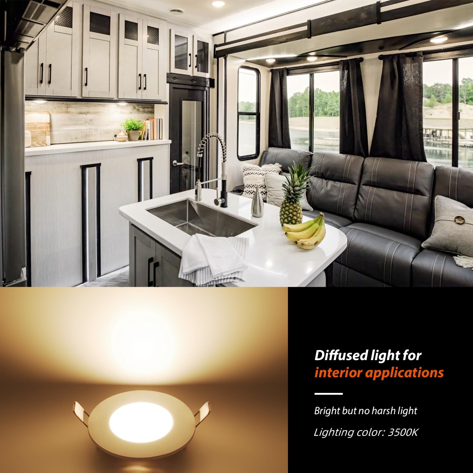 Dream lighting RV Interior Lights 12v LED Puck Light for RV Camper Ceiling Cabinet Lighting Fixtures, Recessed Mount, 3500K Soft White, Pack of 4