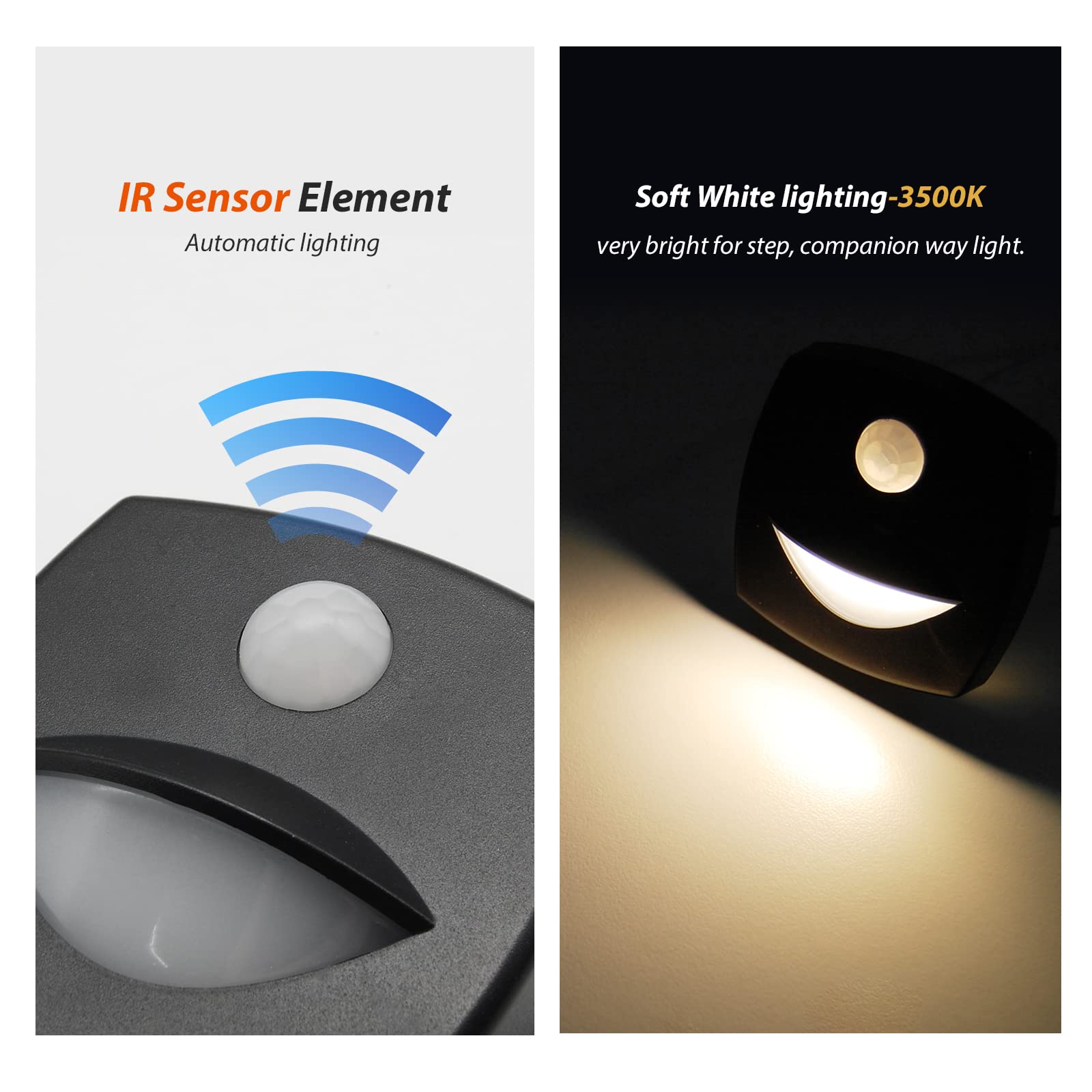- ăPIR Motion Sensor LightăEquipped with a PIR motion sensor, this light automatically turns on as a companion way light when motion is detected within a 13ft (4-meter) range. If no movement is detected continuously, the light will stay on for 37 seconds and then shut off automatically. It features 24/7 motion detection once powered on, and can be connected to an external switch to disable daytime operation for energy efficiency.